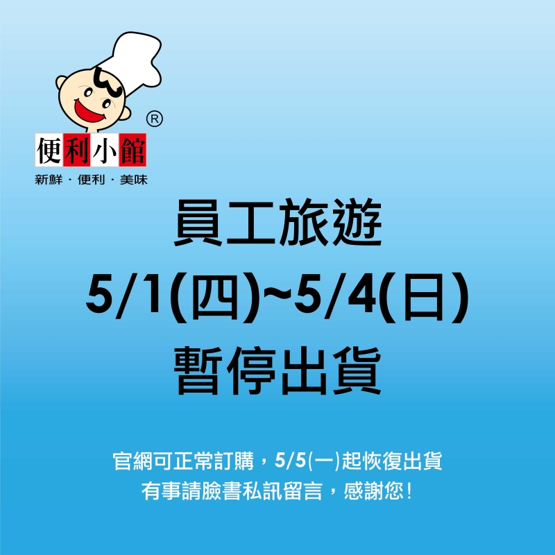 便利小館2025/5/1(四)~5/4(日)因員工旅遊停止出貨~請粉絲們提早訂購喔~我們就能趕快把美味的冷凍美食 送到您手上唷! 歡慶母親節!加入會員馬上送紅利金50點,現買現折,消費滿1500免運,滿2000送鱸魚精1包,滿4000送鱸魚精2包,以此類推~5/11(日)截止,買到賺到! ↓趕快來便利小館官網訂購吧↓ shop-fortunelife.com.tw